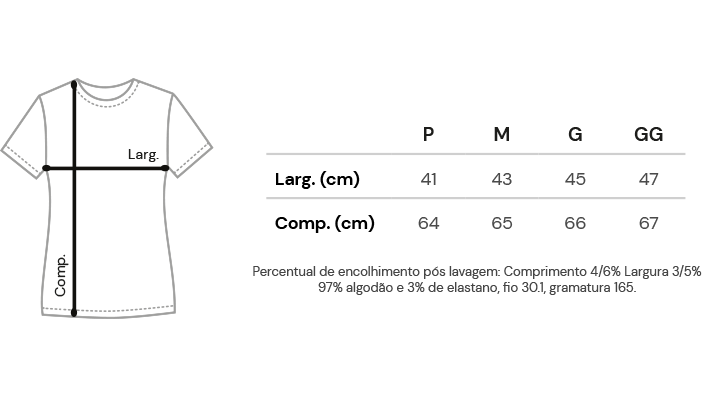 Composição: 97% algodão 3% elastano, fio 30.1.